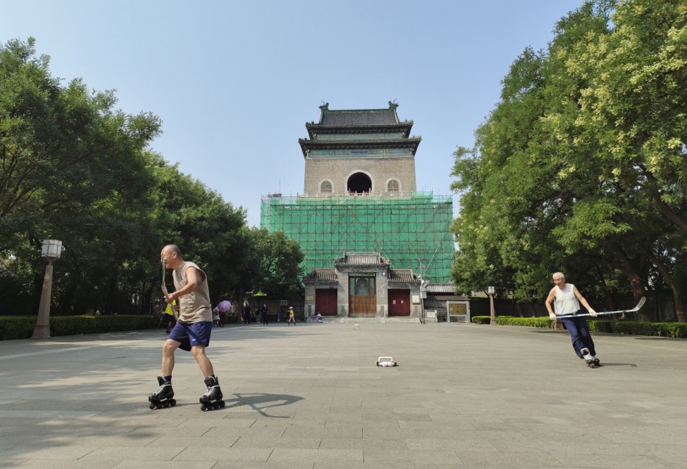 8月6日,钟鼓楼文化广场,两位老人在打球。新京报记者 浦峰摄